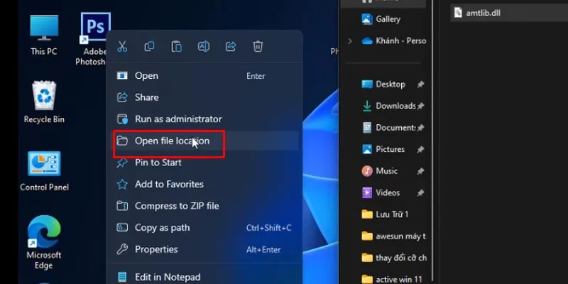 Bước 10: kích vào icon phần mềm và bấm chuột phải chọn như hình